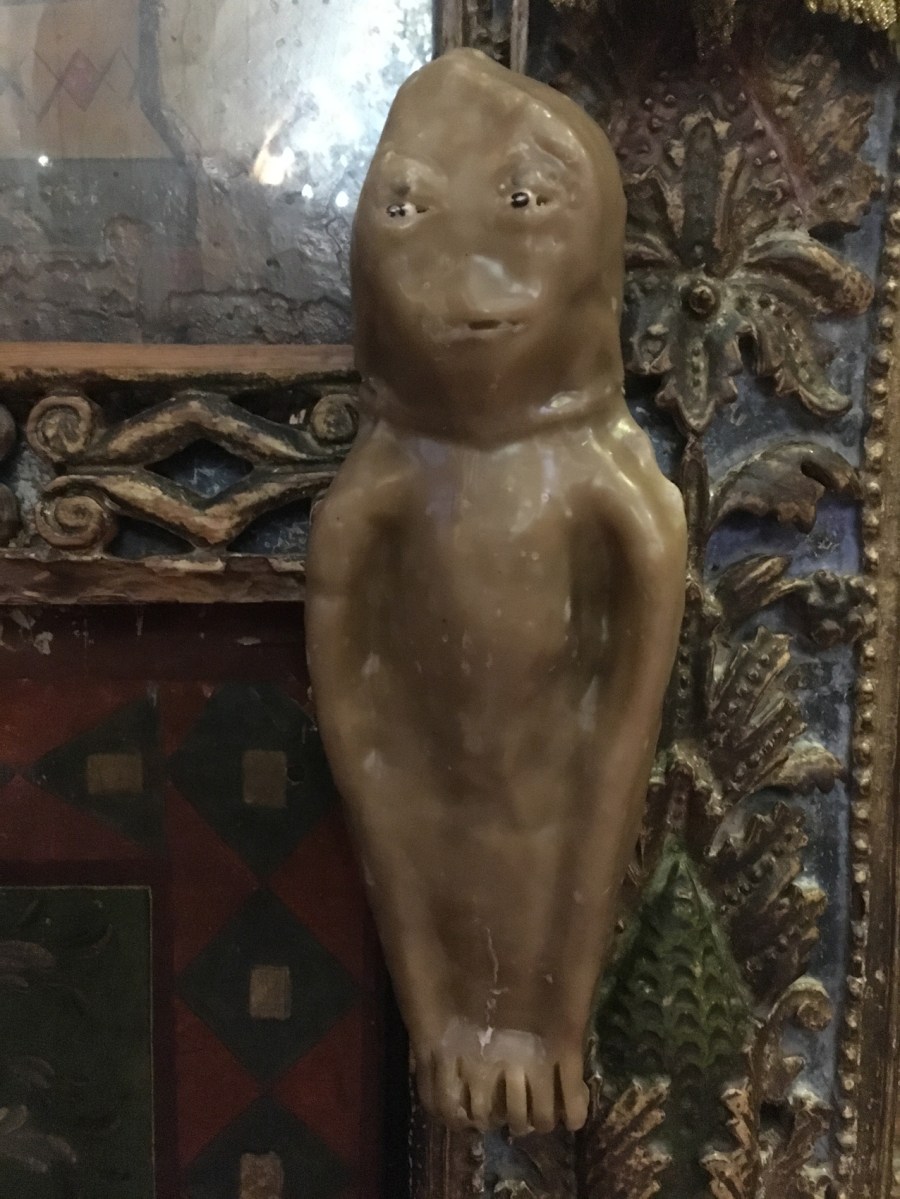 Fig2 Published September 13, 2018 at 1276 × 1701 in Wax infant votives in Cyprus: ancient and modern parallels ← Previous Next → Figure 2: Wax baby (hand-made type) in the Panagia Angeloktisti church, Kiti (author’s photo).