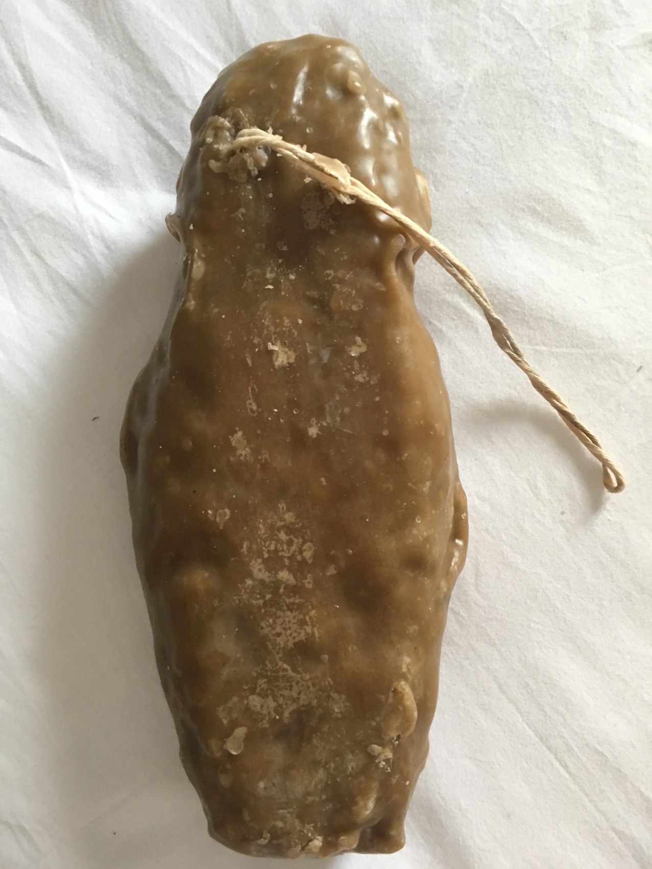Fig9 Published September 13, 2018 at 1276 × 1701 in Wax infant votives in Cyprus: ancient and modern parallels ← Previous Next → Figure 9: Hand-made wax baby, back (author’s photo).