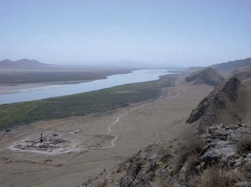 The temple complex itself was a monumental mud-brick structure, raised on an artificial mound around 10 m above the surrounding terrain and fortified with 2 m thick surrounding walls and towers at each corner (Litvinsky & Pichikyan 2002, 134-5; Lindström 2020, 292). Placed at the edge of the river’s flood plain, its position and orientation participate in what Christina Williamson calls the ‘activation’ of landscape to create ‘a ritualized composition of space, timing and experience’, enhancing the sacrality of the space (Williamson 2020, 111-2). This is reflected not only in its placement at the edge of the floodplain with a ramp leading down to the confluence of the two rivers, but also in the orientation of the facade. The front of the temple faces towards the point where the river breaks through between two mountain outcrops, which once a year would be aligned with the sunrise (Lindström 2016, 286; Wood, in press). The relationship with the river provides a rootedness and permanence for cult worship at the site. The supply of water required for ritual performance and purification, reflected in limestone purification basins found in the infill of the courtyard and the multiple wells and cisterns, would likely have a particular sacral importance given that it was drawn from the river that was being worshipped.
